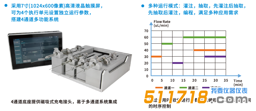 體積小巧,結(jié)構(gòu)緊湊,便于手持和固定,流量平穩(wěn),精度高,適用于微量液體的傳輸和處理,7寸高清液晶觸摸屏,圖形化界面,使用簡單直觀,通過專用PC軟件進(jìn)行參數(shù)方案編程,實(shí)現(xiàn)4通道之間的時(shí)序控制。