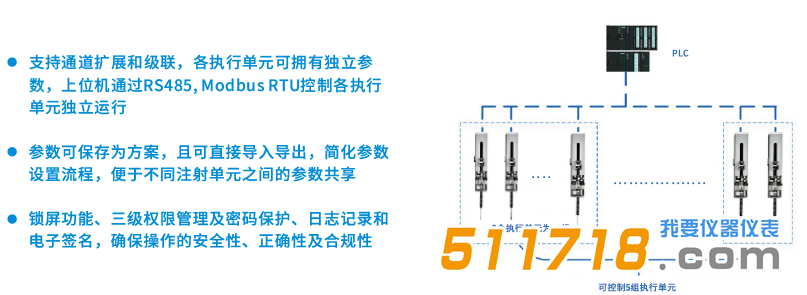支持通道擴(kuò)展和級聯(lián),各執(zhí)行單元可擁有獨(dú)自參數(shù),上位機(jī)通過RS485, Modbus RTU控制各執(zhí)行單元獨(dú)自運(yùn)行