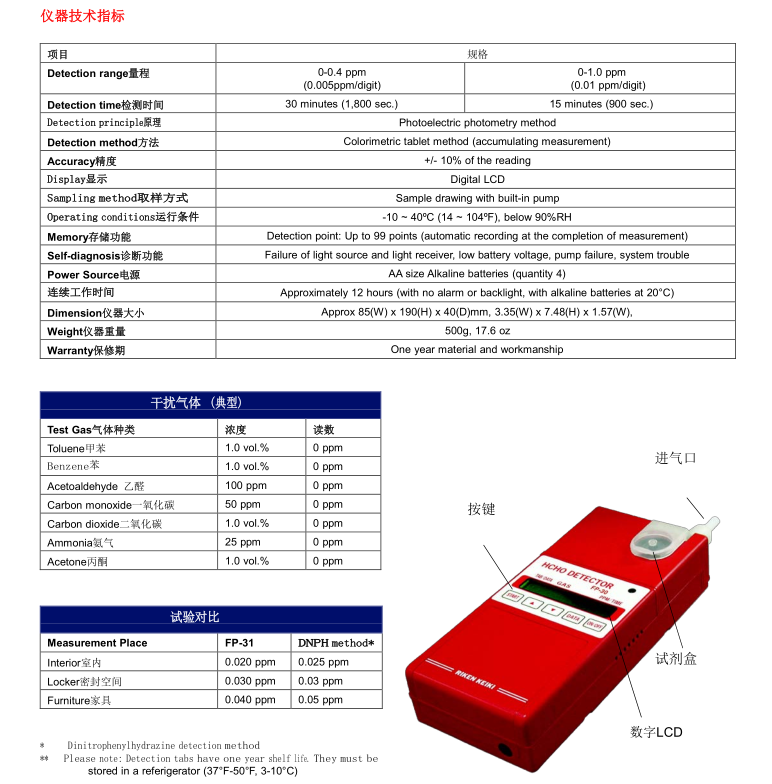 日本理研RKI FP-31甲醛檢測儀沒有采用電化學(xué)傳感器,而是采用光電原理,結(jié)合藥片試劑,具有長壽命,高精度,是目前市場上很暢銷的甲醛檢測儀。